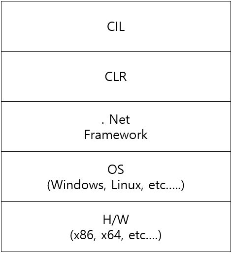 (닷넷프레임웤은 OS 위에서 동작하는 인터프리터로 *Native Code를 실행환경(OS)에 상관없이 실행할 수 있게 도와준다)
